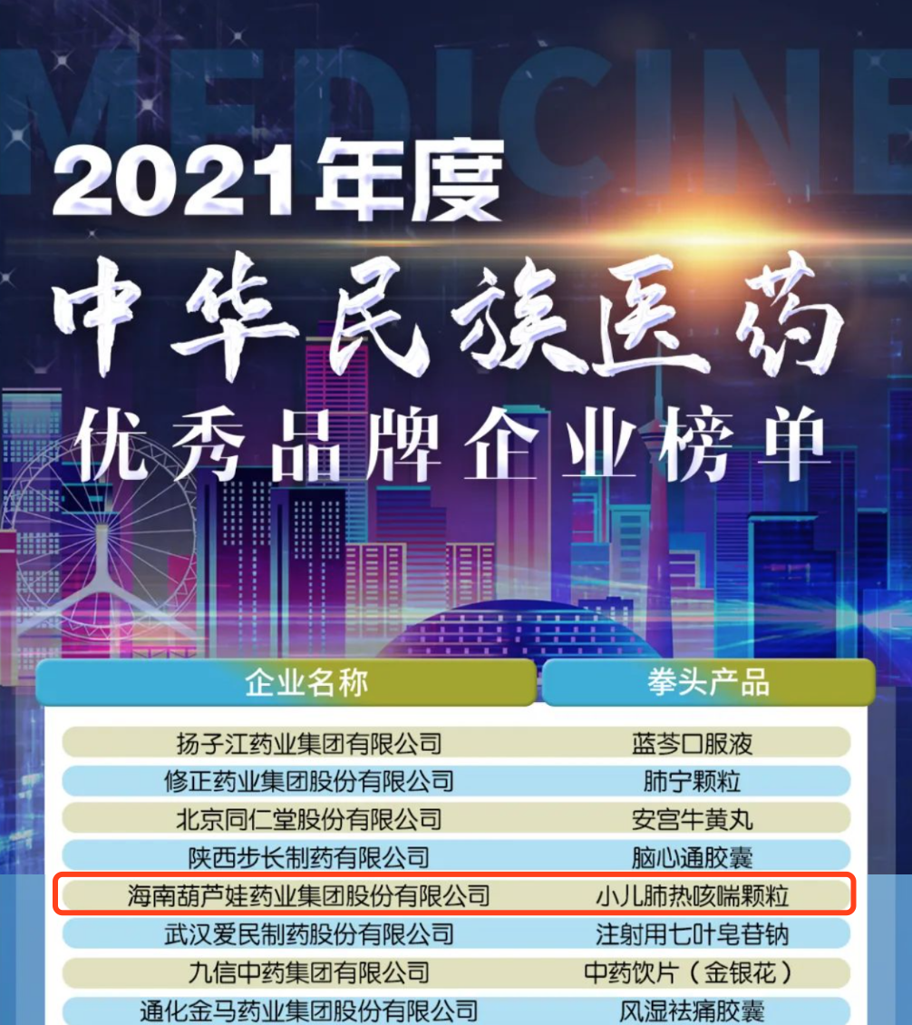 12月29日,全国工商联医药业商会发布了“2021年度中华民族医药优秀品牌企业榜单”,森林舞会药业集团凭借黄金单品小儿肺热咳喘颗粒(4克)实力登榜。
